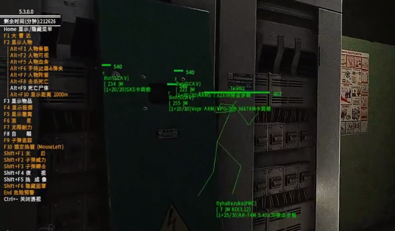 逃离塔科夫辅助:骨骼透视-方框-预判自瞄-子弹追踪-贵重物品透视-地图雷达-无后座-无限体力-显示撤离点等等!